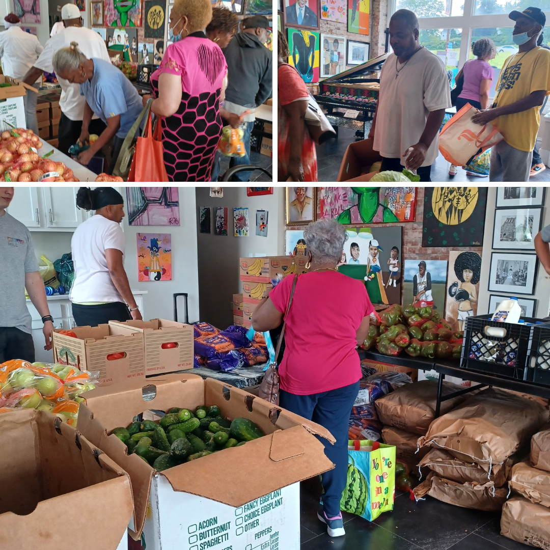 Nafasi on Centre hosts monthly free food distributions in partnership with the Greater Pittsburgh Food Bank, providing thousands of pounds of food to Hill District residents on a consistent schedule. Distributions take place every second Friday of the month starting at 11:00 am and are held on site at Nafasi, making food access part of the regular rhythm of activity at the space.